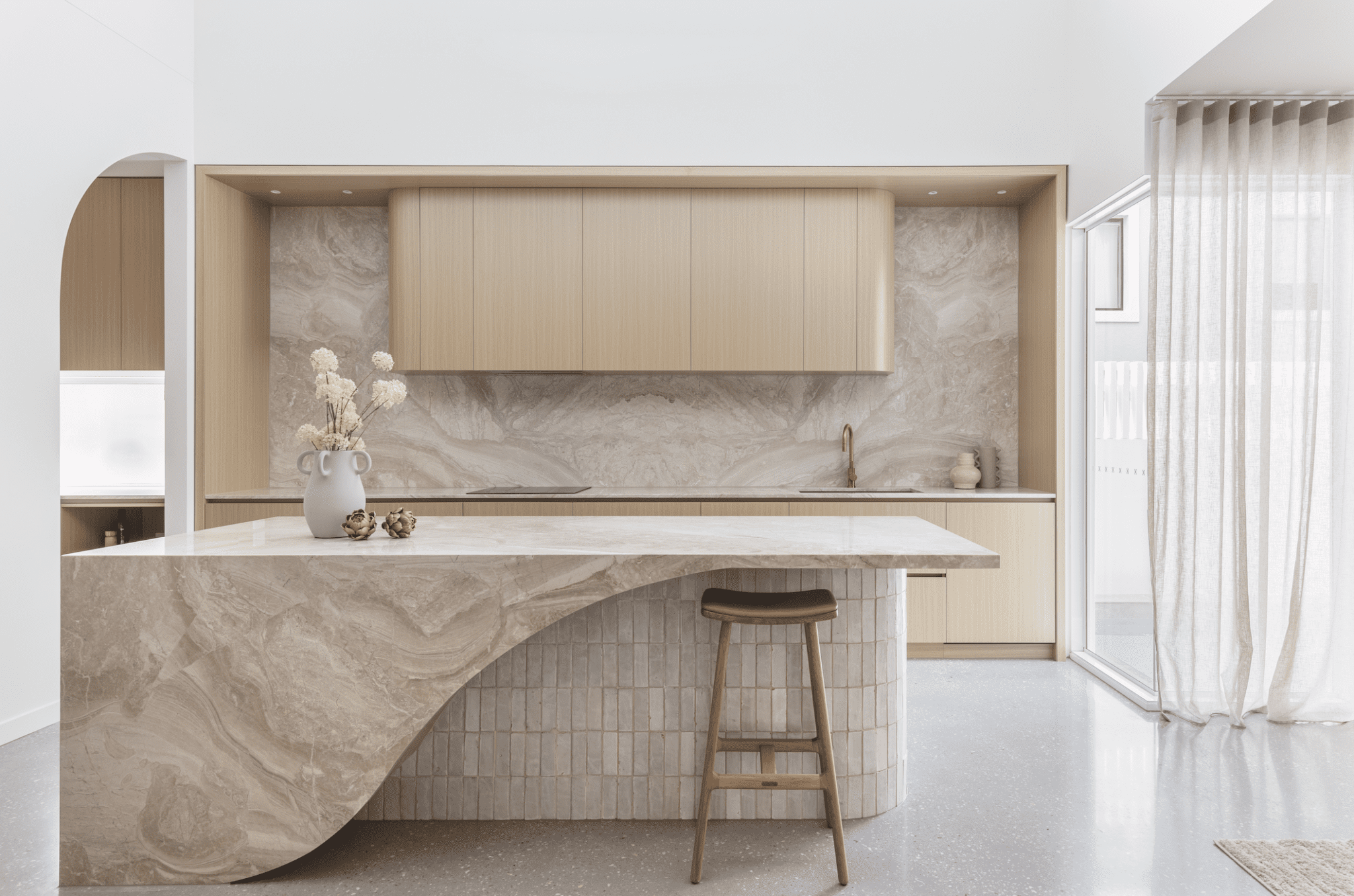 Fantini’s Sailing tapware, with its precise lines and subtle maritime influences, anchors the 2025 Bathroom of the Year — a perfect foil to the room’s softly sculpted, enveloping composition.