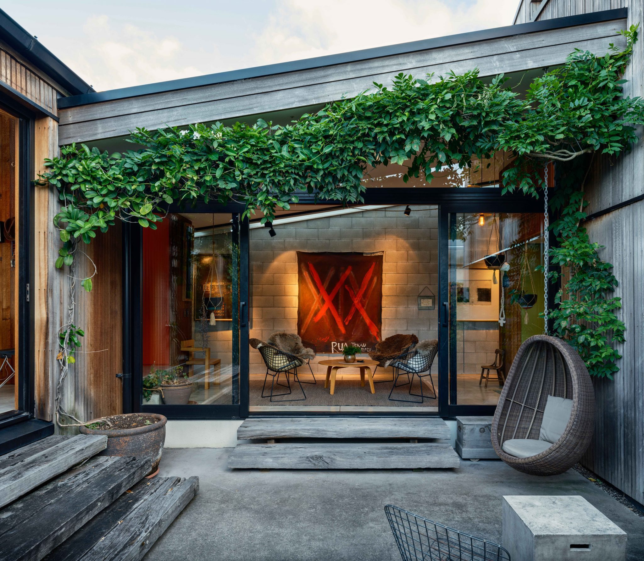 Rich has been teaching a university course that includes using his own home as an example of resilience. “It’s about the effects of the Anniversary Day floods that went nuts around this area,” he explains. “Houses were washed out and the park was flooded. But this house is a lesson in its climate resilience; it handles the deluges and deals with extremes very well.”