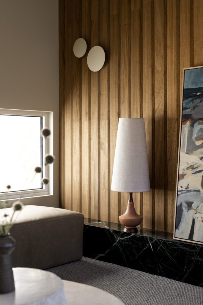Inside, a restrained yet tactile palette of recycled timbers, stone, and natural wool carpets reinforces the ethos of longevity and care. In the four bedrooms and sunken lounge, Feltex’s 8th Wonder chunky wool carpet establishes a character-rich foundation.