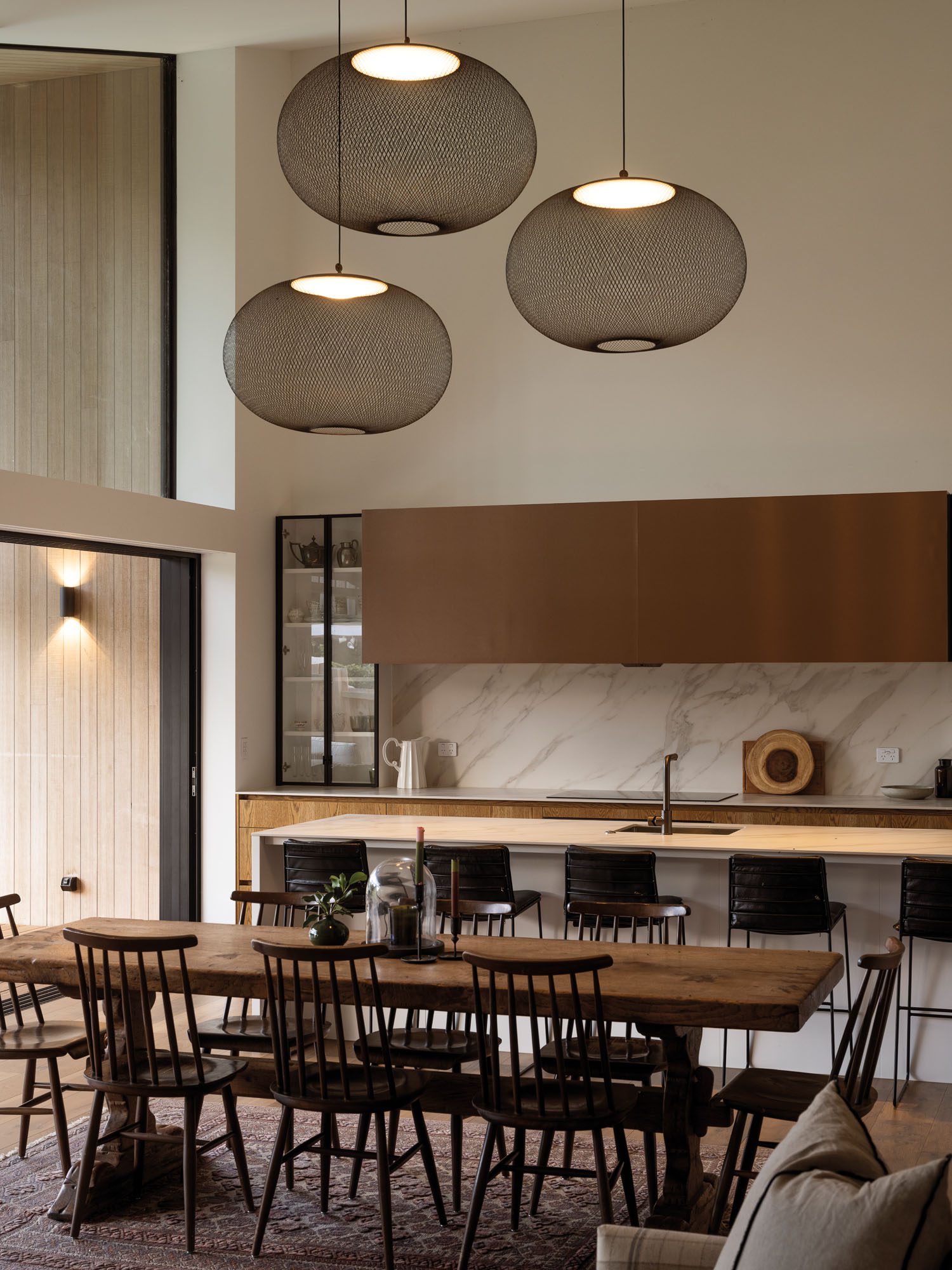 Ceilings rise to five metres in the kitchen, creating an unexpected sense of volume that opens to the bucolic scene beyond.