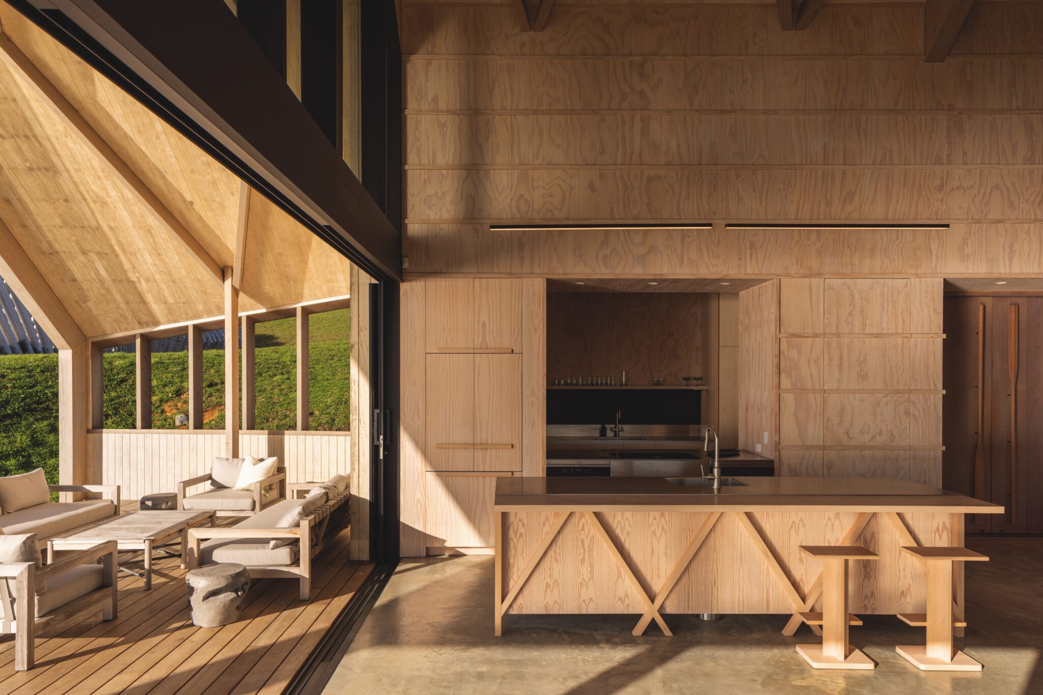 A building of the South Pacific. A sculptural pavilion of asymmetry that came first. A trio of pavilions, one for living and two for sleeping, that came second. A place for contemplation; spaces for restoration.