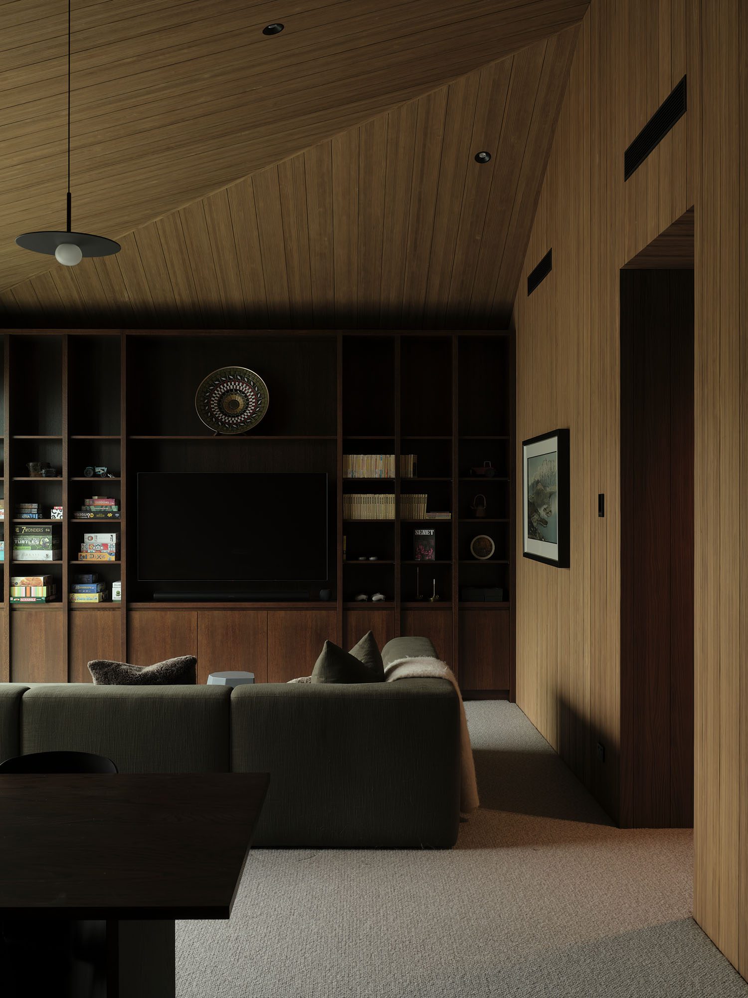 Meanwhile, the timber-clad interior glows and cocoons, adding touches of hygge and nostalgia — elegance and soul — to a truly eloquent interpretation of the RTA vocabulary.