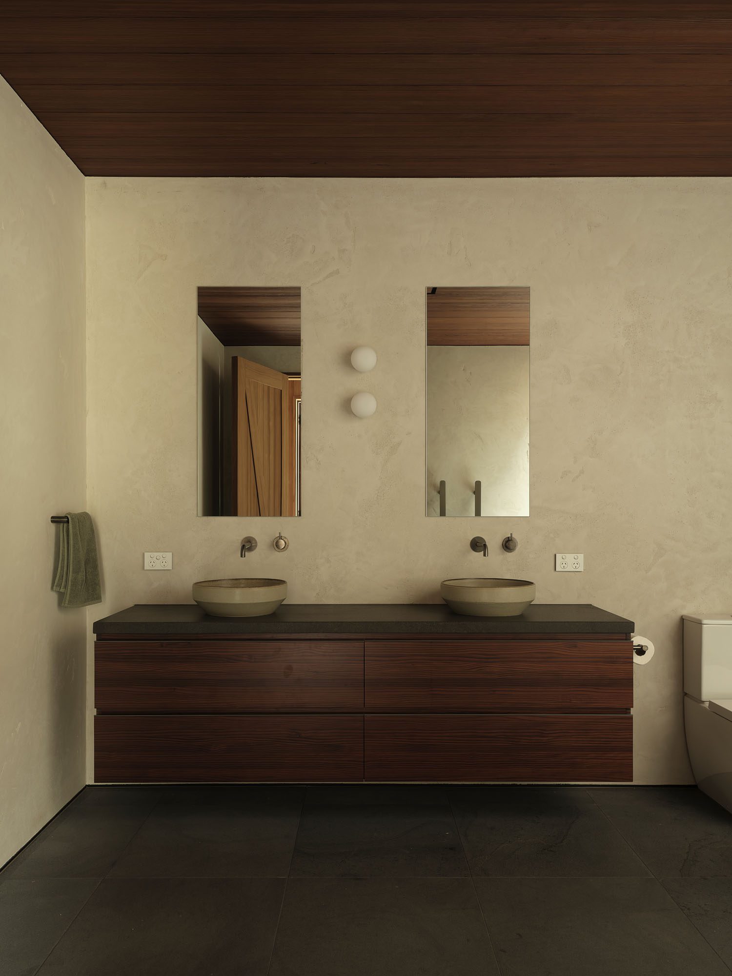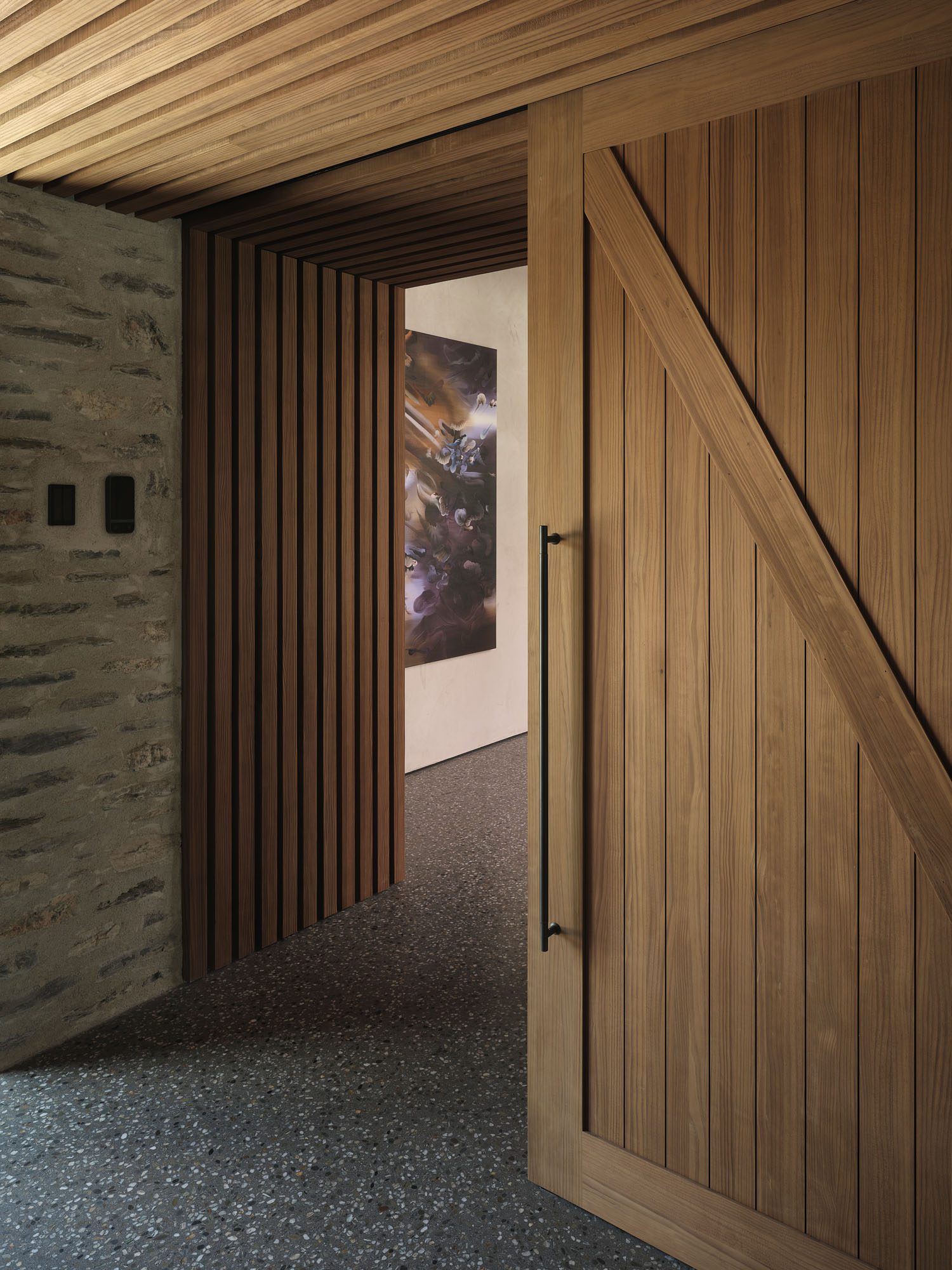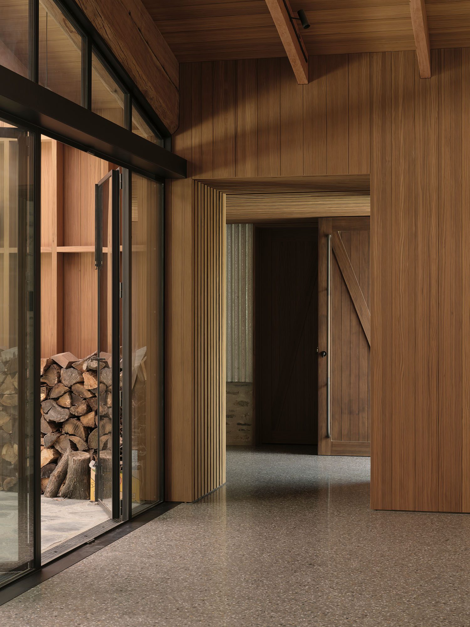 “The idea of Two Sheds is abstracted and formalised interpretations of rural sheds,” said lead architect and RTA director Rich Naish. “One has a pyramid roof, and the other is half that, because we’ve sliced through it and exposed the gable.”