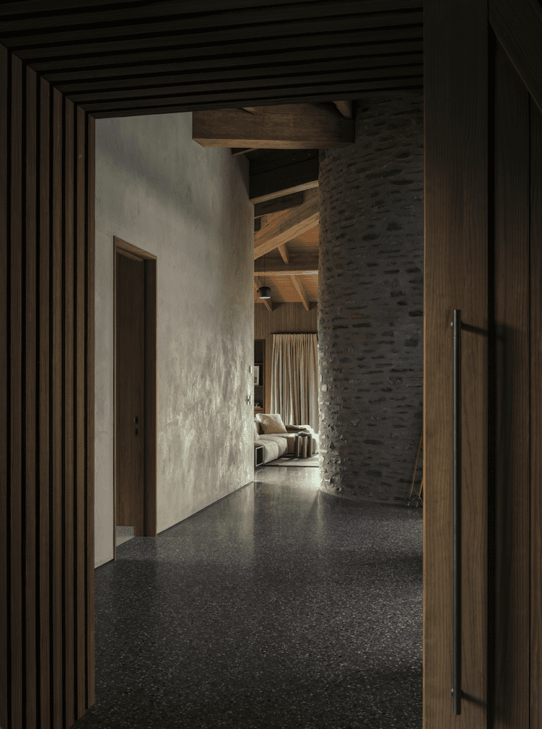 What might appear as a loose aggregation of rural sheds reveals itself as a carefully orchestrated sequence of spatial encounters.