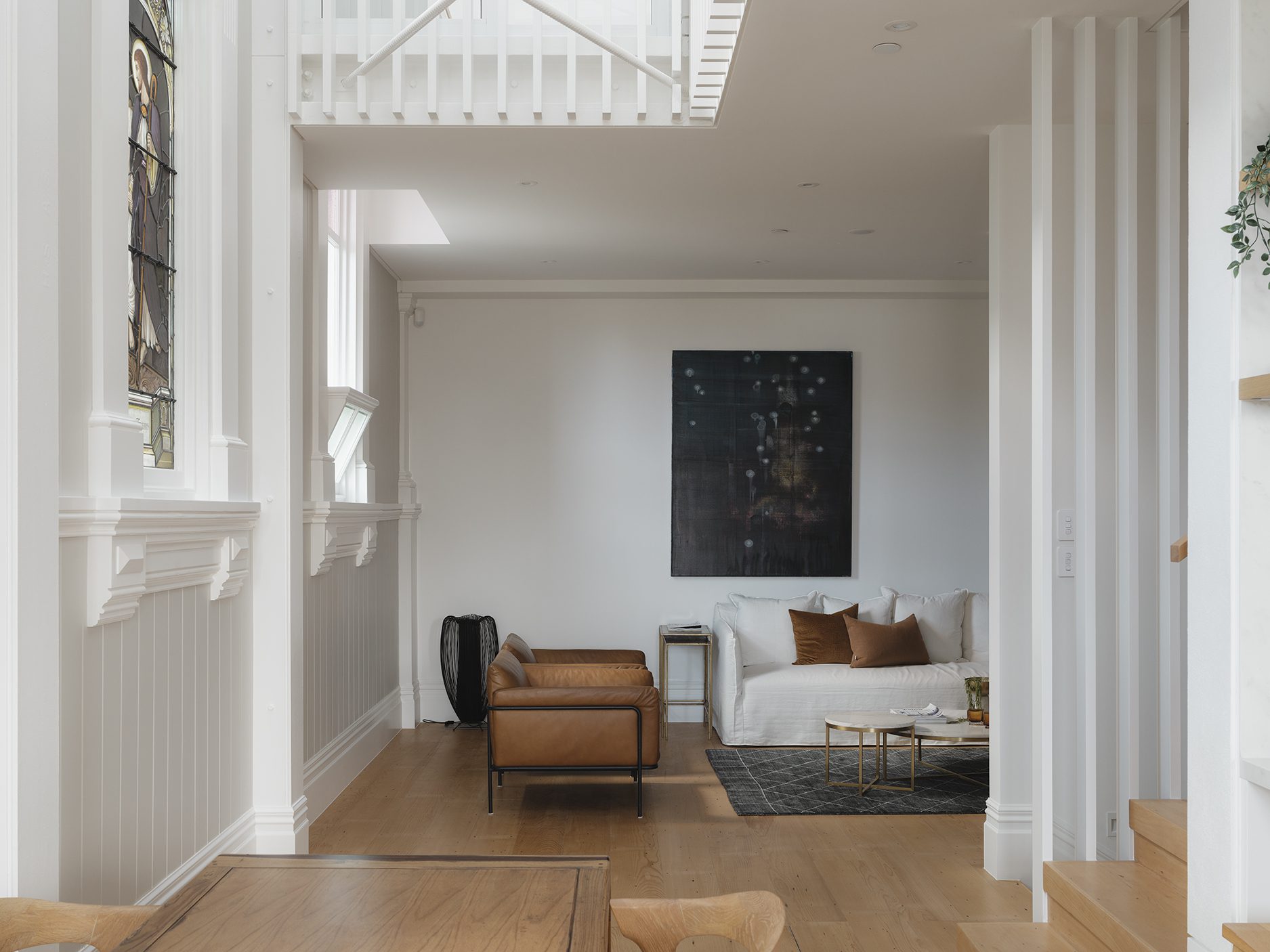 “It suffered vandalism, squatters moved in, and nature began reclaiming it. Vines crept across the façade, trees grew from the parapets. It was at real risk of becoming another lost piece of Auckland’s heritage.” So when a long-time client arrived at Gel’s studio one day announcing he had purchased a church — and wanted to convert it into apartments — the proposition was both unexpected and welcome. “It marked the beginning of a five-year journey,” Graeme says, “to bring these residences to life.”