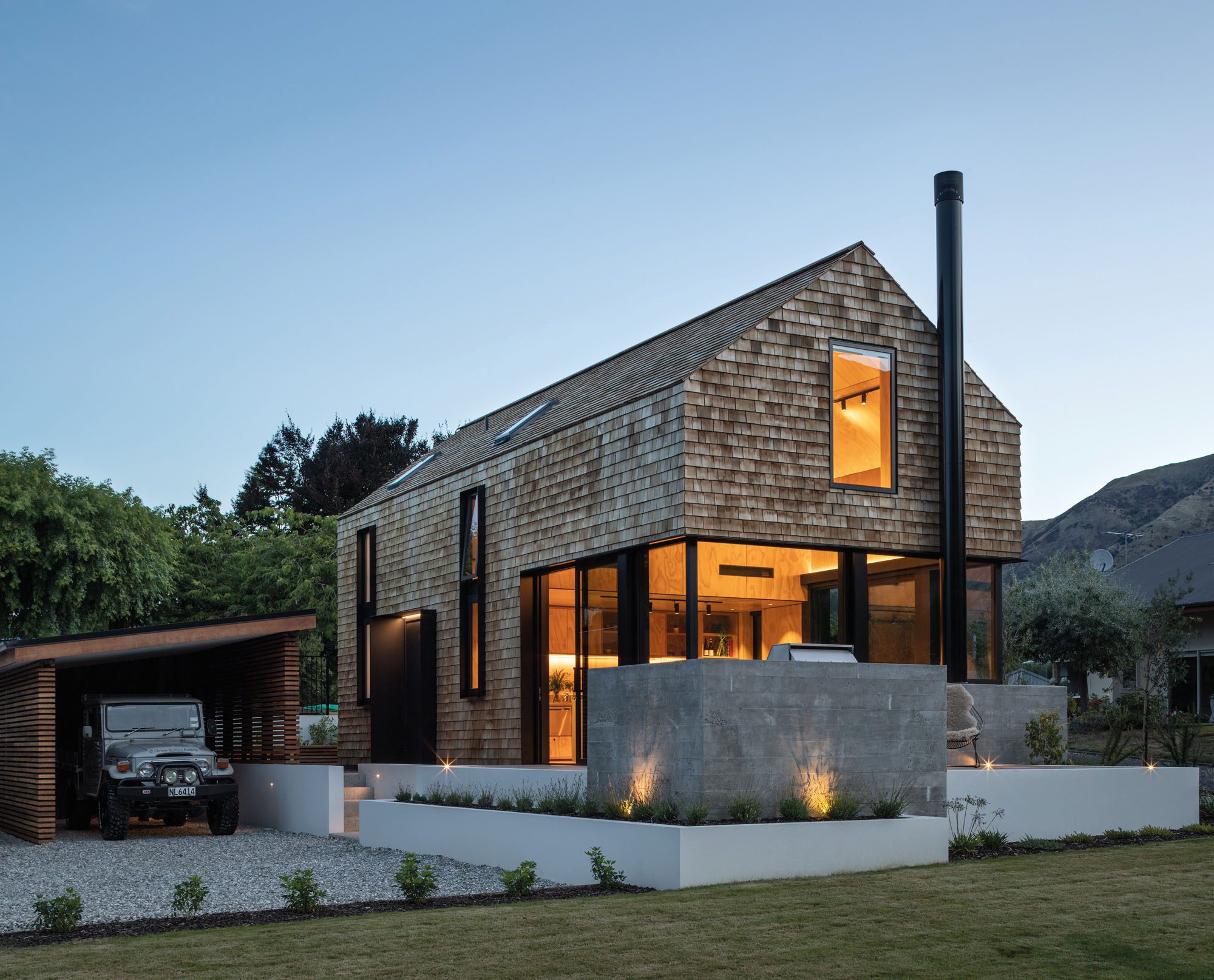 “We felt that a small form like this could easily become overwhelmed if multiple claddings were used, so we sought a material that could function as both wall and roof cladding,” says Barry Condon of Condon Scott Architects. It’s a distinctly unique style that has softened and weathered over time, creating an almost dappled effect on the exterior cladding.