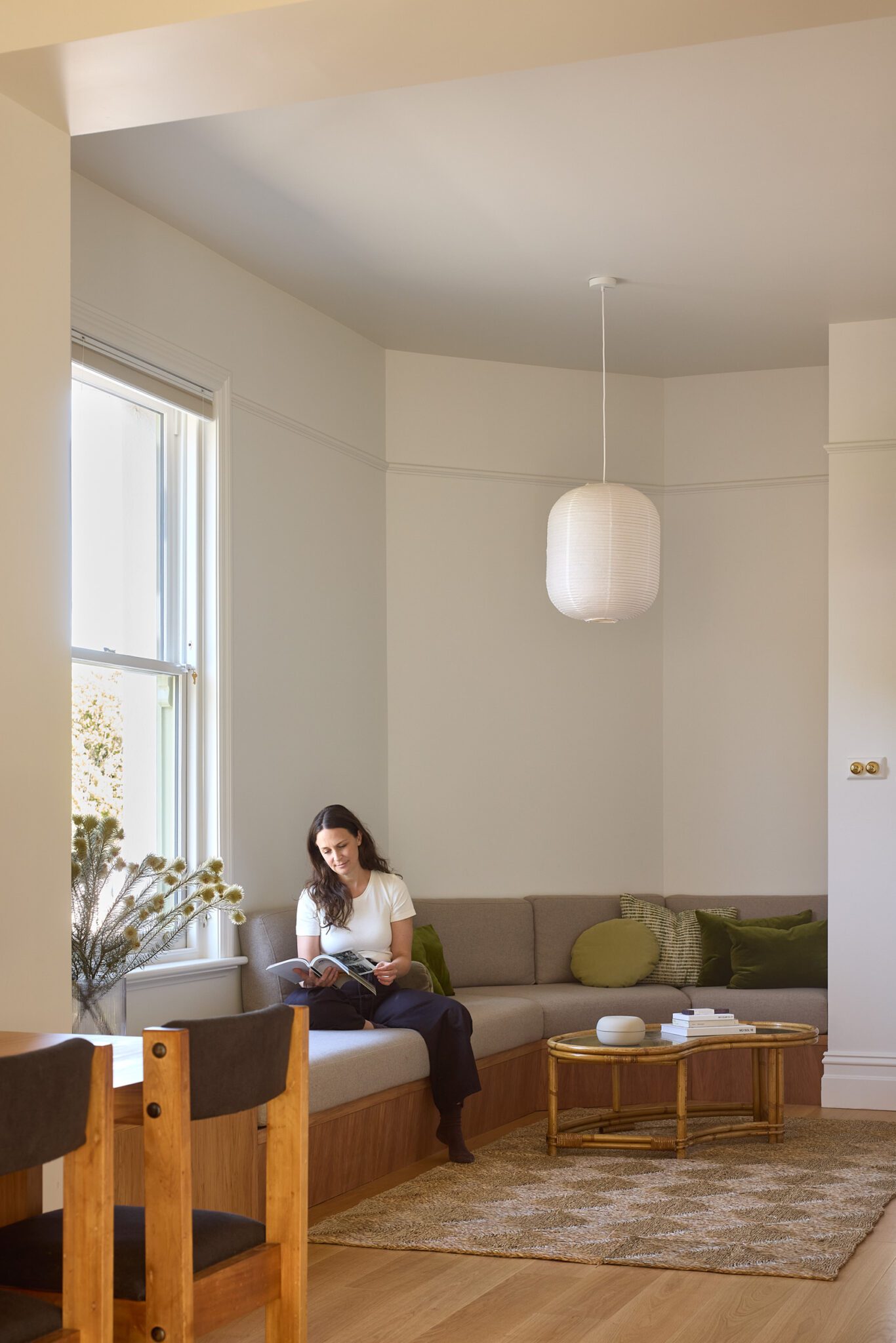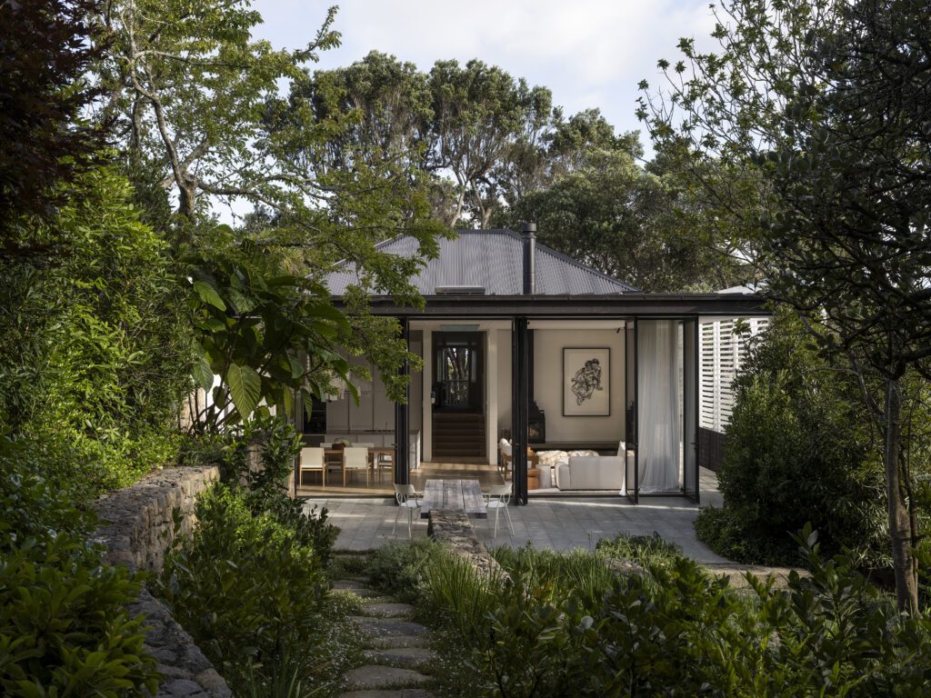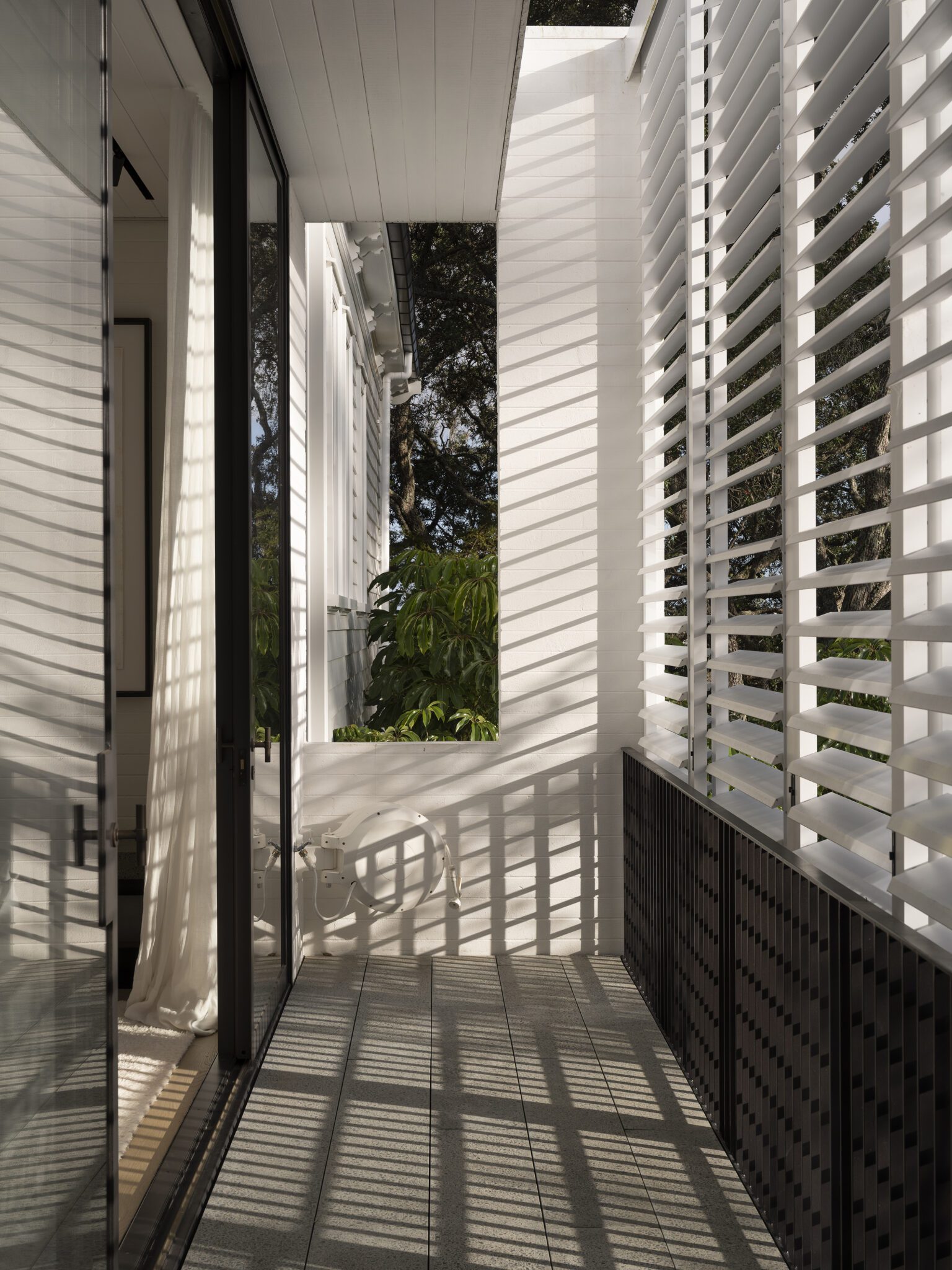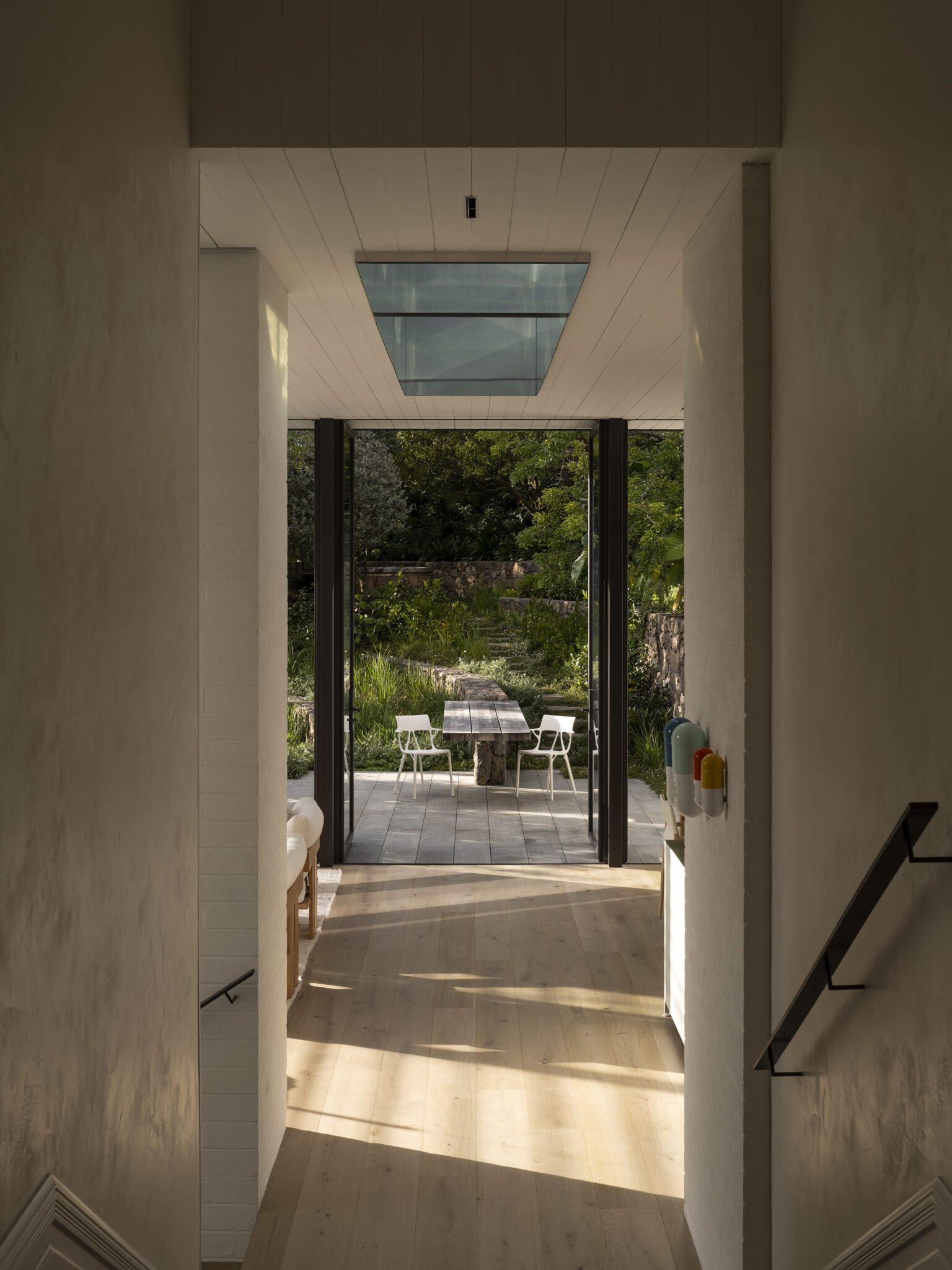 A new entry positioned between the heritage villa and rear addition unlocked the potential of this project.A clear separation of old and new is expressed through material choice and architectural detail.The two-storey addition creates a lofty, open-plan living space with a contemplative quality, seamlessly extending to a terraced garden through elegant giant steel doors.A north-facing deck edges the living area, its louvered screen wall providing privacy from the densely populated slope beyond. Meticulous detailing across both renovation and addition creates a rich dialogue between past and present.