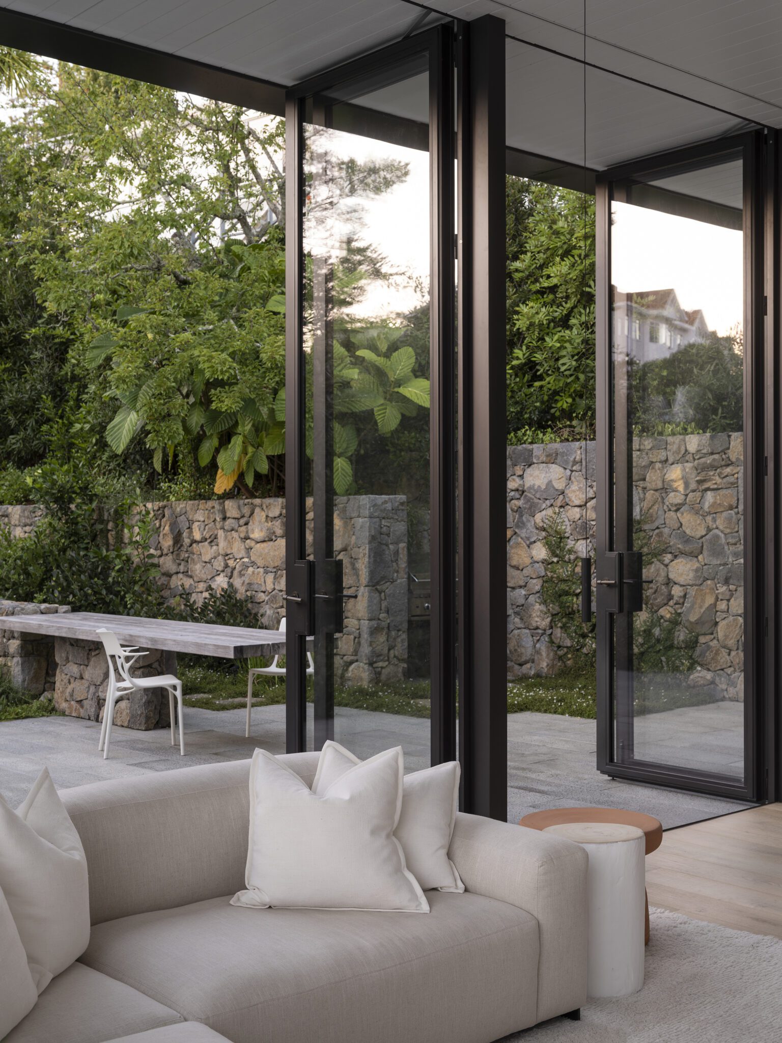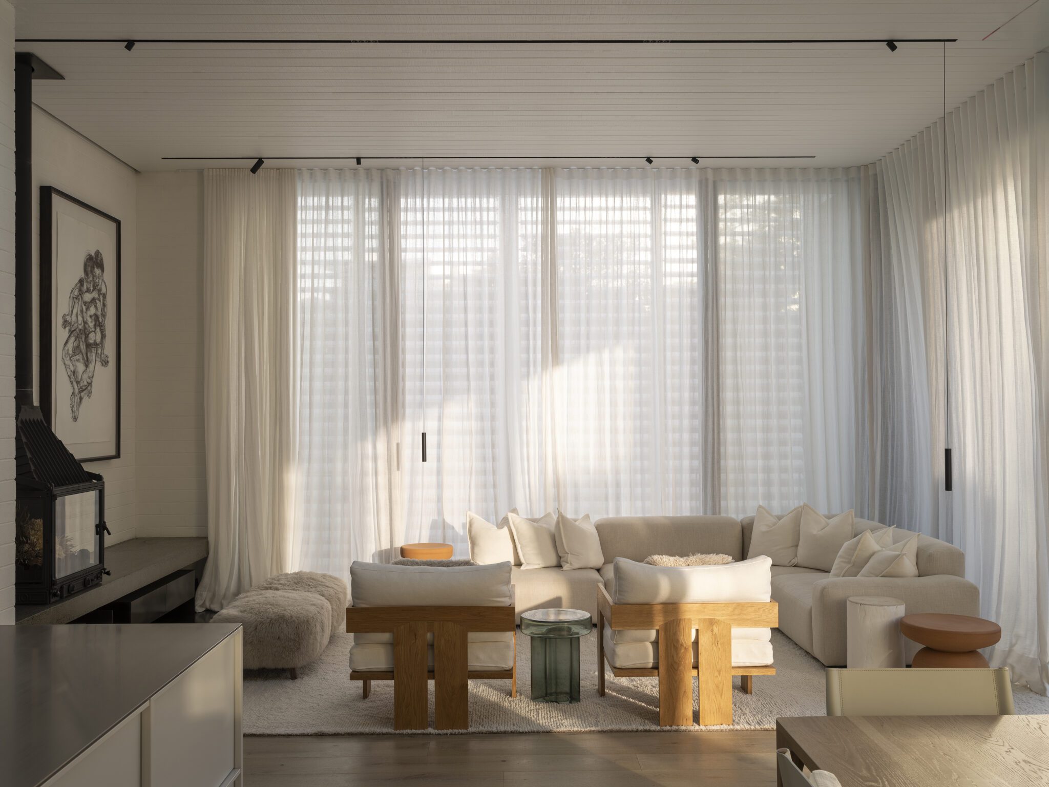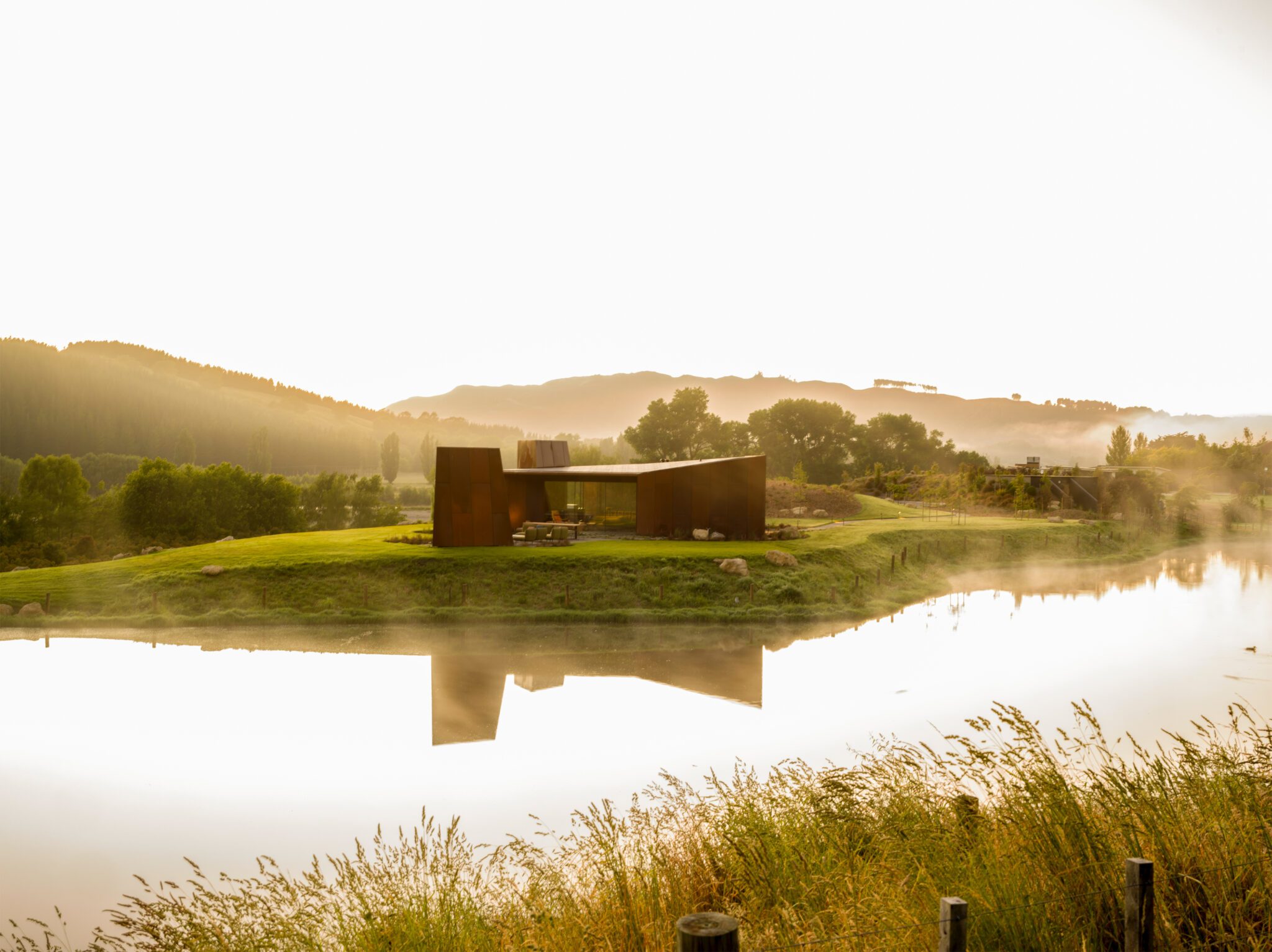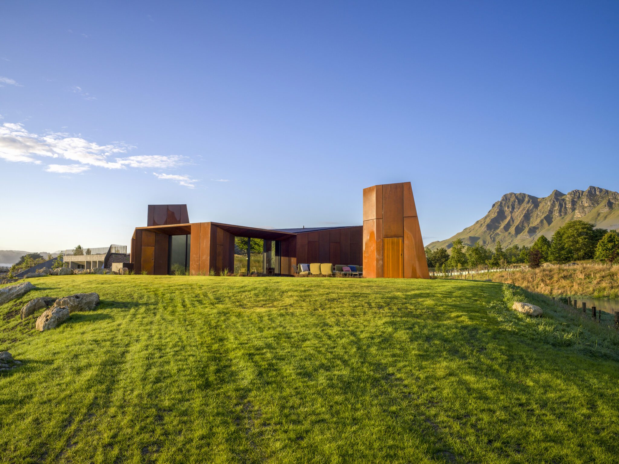 Conceived as an ‘anti-house’, this project challenges convention through three buildings dispersed across the site. The pivotal social pavilion is extroverted and sculptural, its pinwheel of apertures frame and connecting with the landscape. Clad in patinaed weathering steel, it encloses a luxuriously detailed interior of dark timber, stone, and angled planes that create dynamic spatial experiences. In contrast, two semi-buried bedroom sanctuaries are recessive and serpentine, their off-shutter concrete and light-toned interiors forming cocoon-like retreats. Idiosyncratic and assertive, the project redefines the retreat typology.