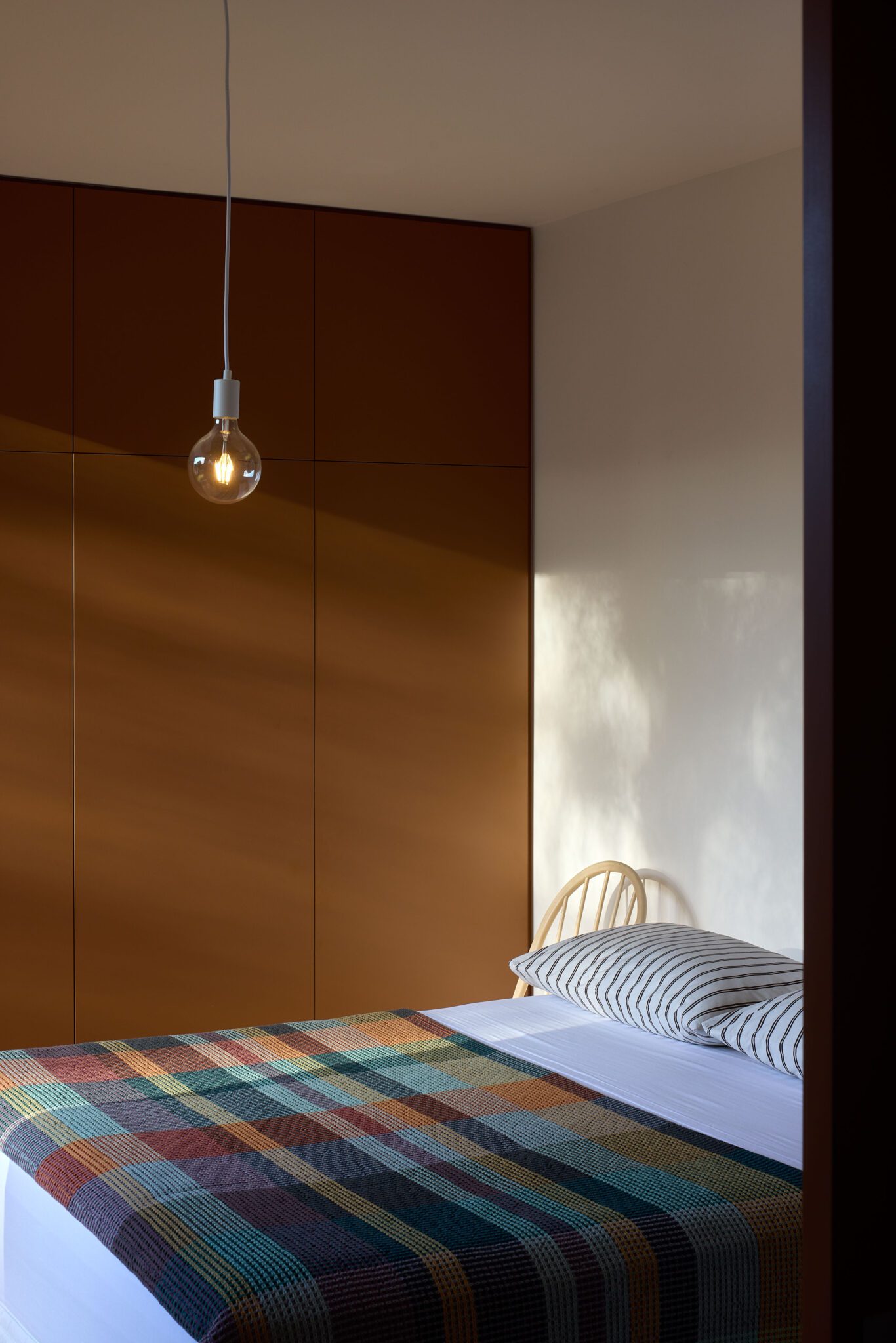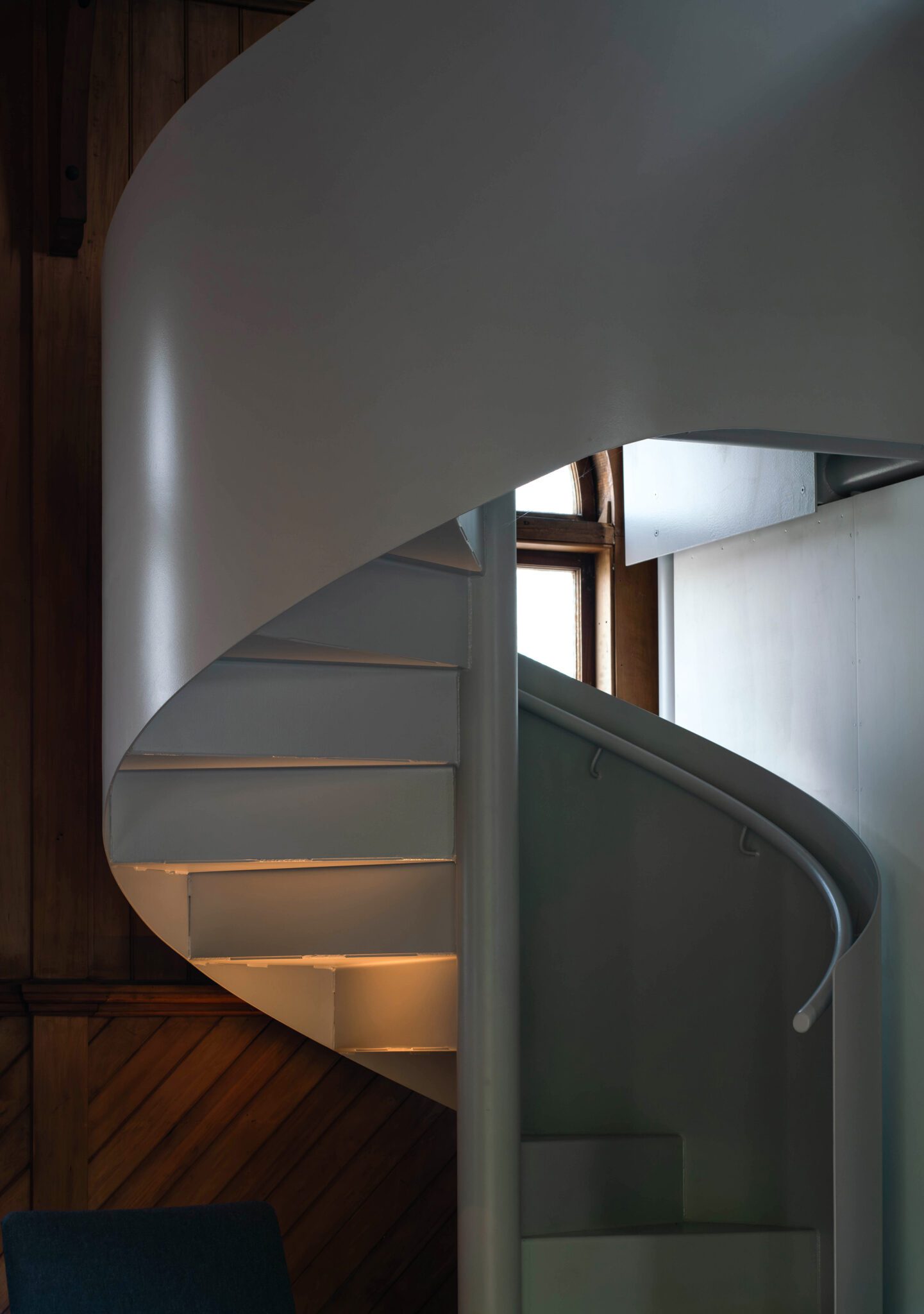 The conversion of this church into a family holiday home is a respectful yet inventive transformation, championing sustainable adaptive re-use. The restoration and preservation of the existing building has been undertaken with sensitivity and rigour, honouring the integrity of the original church’s construction and maintaining its exterior identity within its original context.The careful insertion of a modern mezzanine sleeping space, coupled with a kitchen and snug below, is clearly identified through its juxtaposing materiality and colour identity, while a three-tier bunk room and bathroom fit neatly at the rear. A large over-wall sliding door with privacy screen is the only obvious envelope adaptation; a well-handled move that connects the interior to the exterior courtyard and signifies the building’s new use as a reimagined family holiday home.
