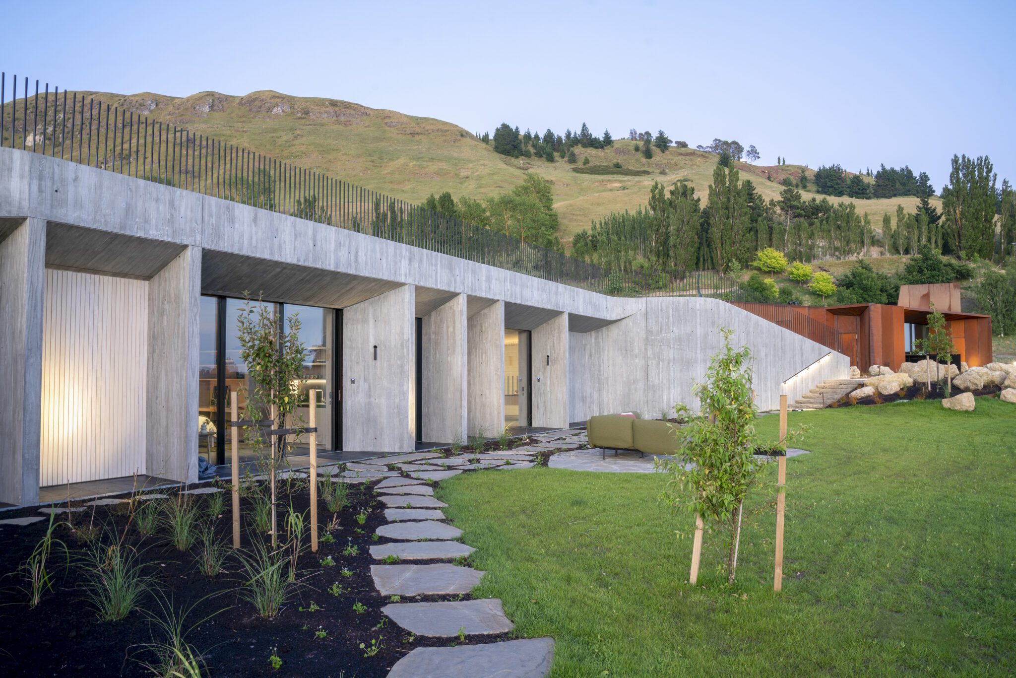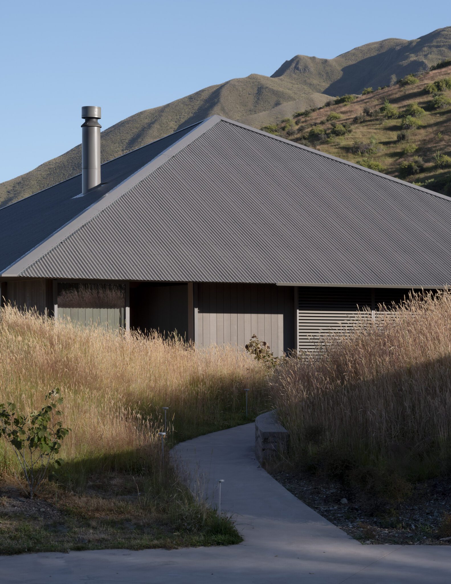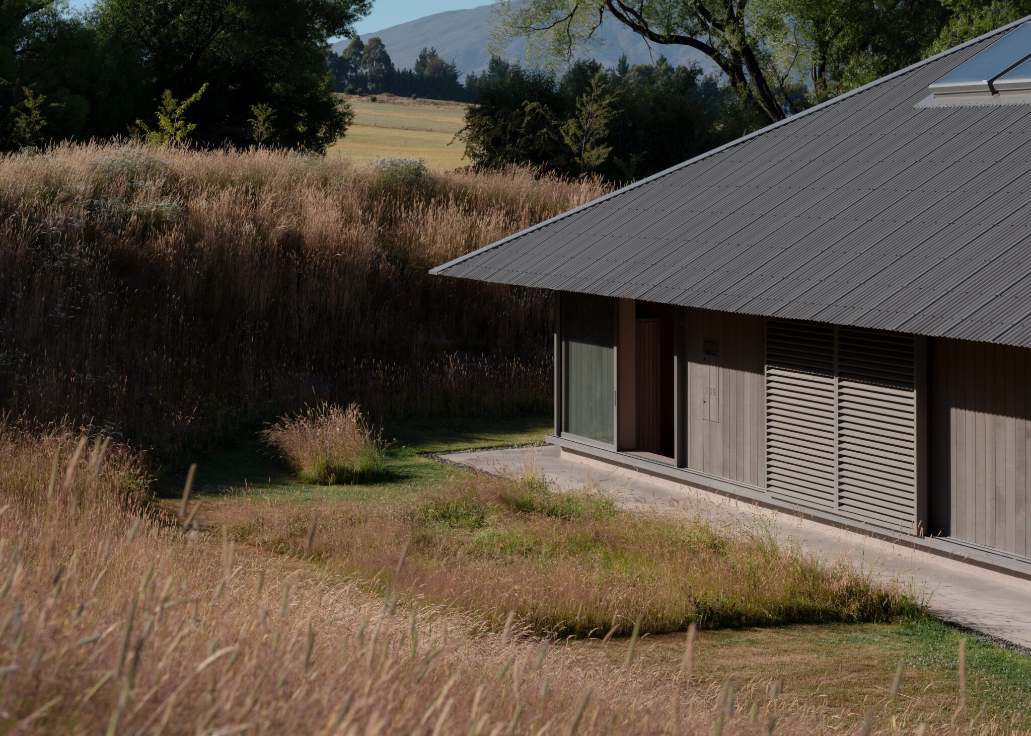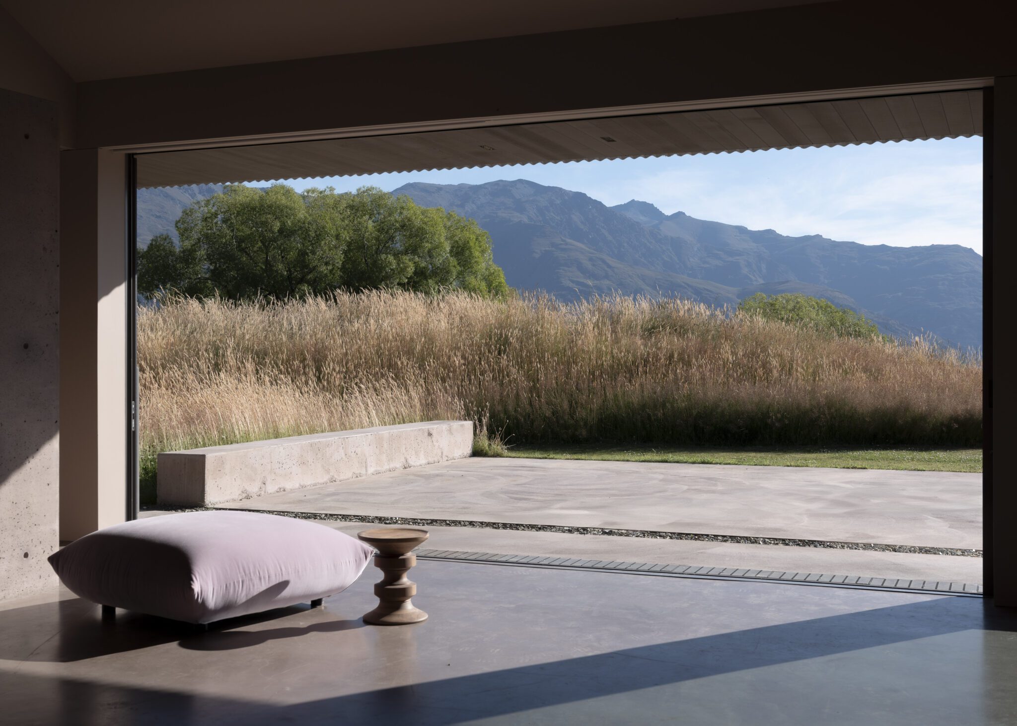 This assured composition of stacked platonic forms holds its ground against the vast scale of the landscape and volatility of the environment.A corrugated roof recalls the region’s vernacular structures, while sculpted earth mounds both cradle and protect the house, settling it firmly into the foothills.Inside, geometric rigour is expressed through a nine-square grid. Sliding screens play against robust concrete elements to animate the interior, while the main suite, carved into the roof void, is crowned by an oculus that gathers light and telescopes the view.Throughout, refinement is evident in the acute attention to materiality, tonal harmony, and texture, all hallmarks of a design of high calibre.