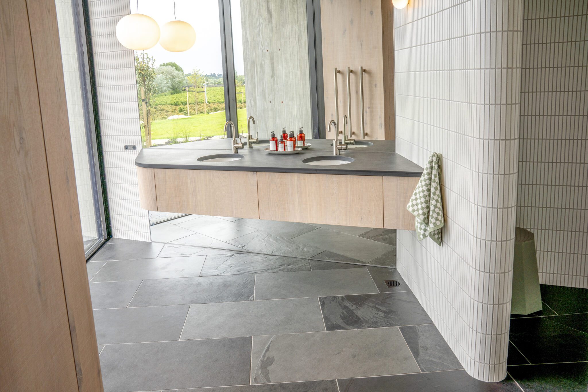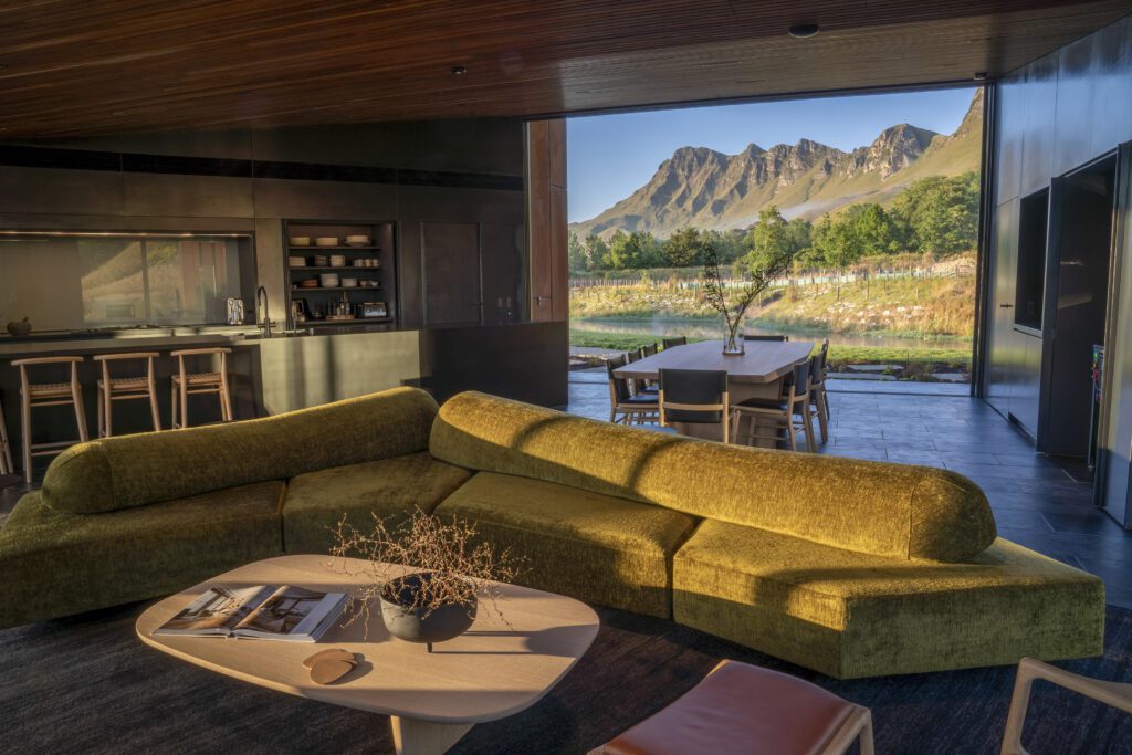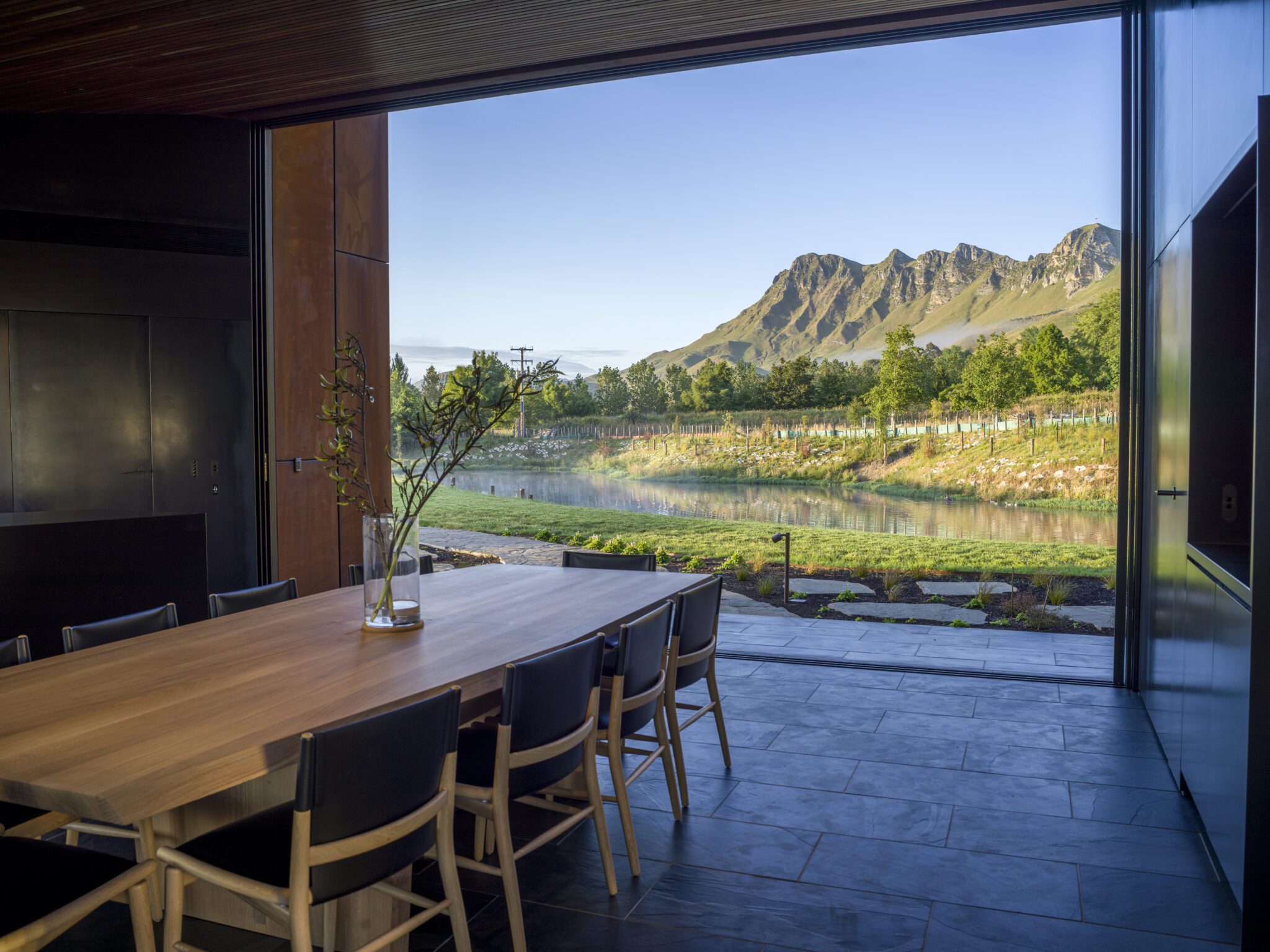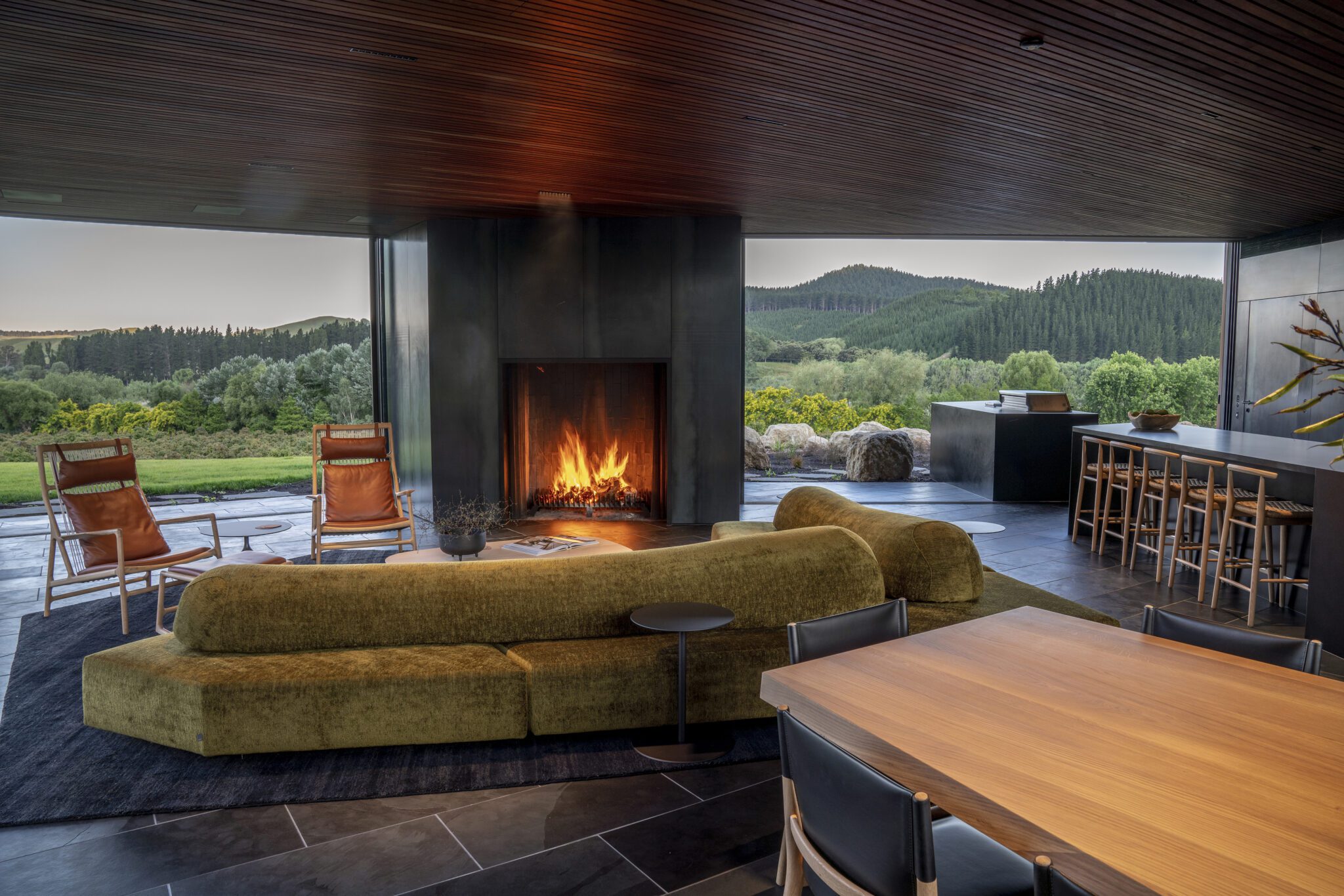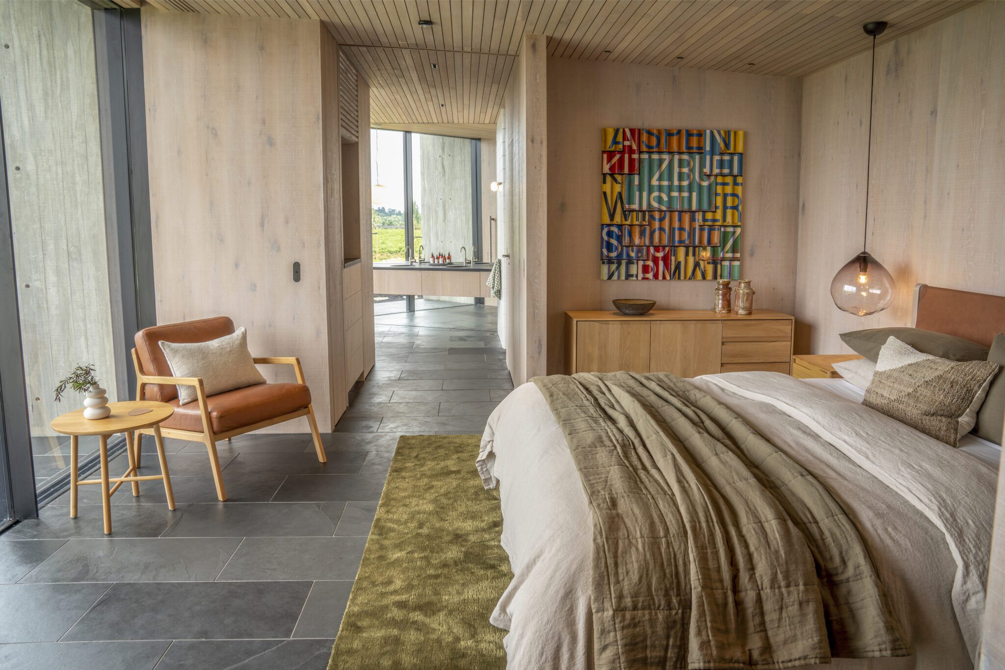 This assured composition of stacked platonic forms holds its ground against the vast scale of the landscape and volatility of the environment.A corrugated roof recalls the region’s vernacular structures, while sculpted earth mounds both cradle and protect the house, settling it firmly into the foothills.Inside, geometric rigour is expressed through a nine-square grid. Sliding screens play against robust concrete elements to animate the interior, while the main suite, carved into the roof void, is crowned by an oculus that gathers light and telescopes the view.Throughout, refinement is evident in the acute attention to materiality, tonal harmony, and texture, all hallmarks of a design of high calibre.