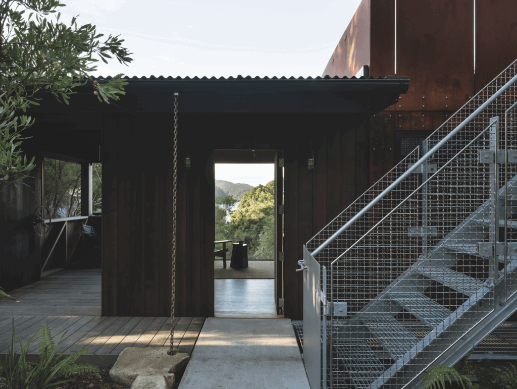 Not many homes require a plane or car ride, a boat ride, and a hike to reach the front door, but this bush cabin does, and it’s worth the commute. Created to provide additional sleeping quarters for guests at a family bach on the edge of Abel Tasman National Park, the cabin is a study in low-key architecture inspired by classic New Zealand tramping huts, informed by endless scrutiny, and, ironically, enhanced by its not-inconsiderable limitations.