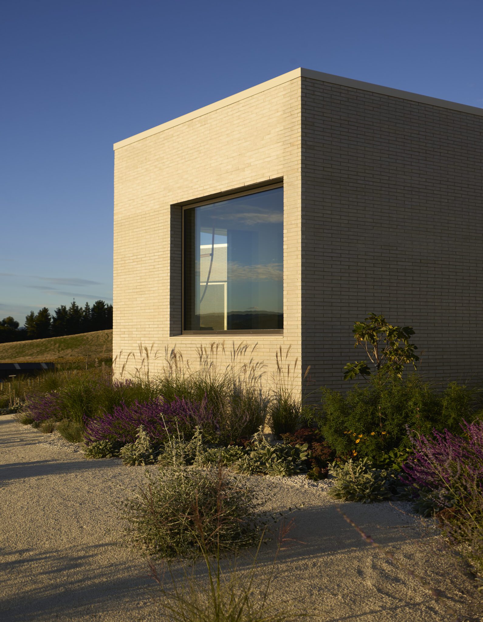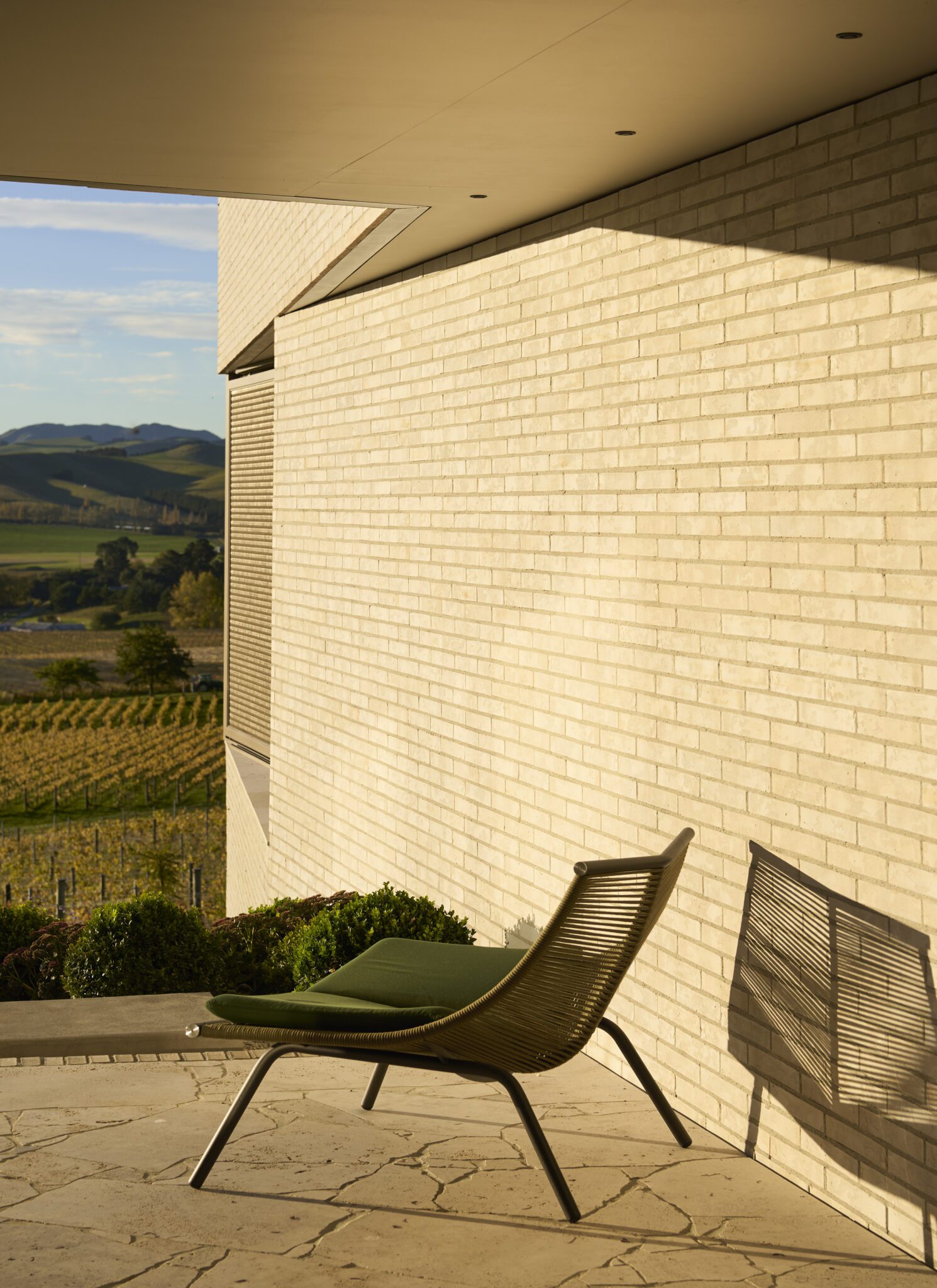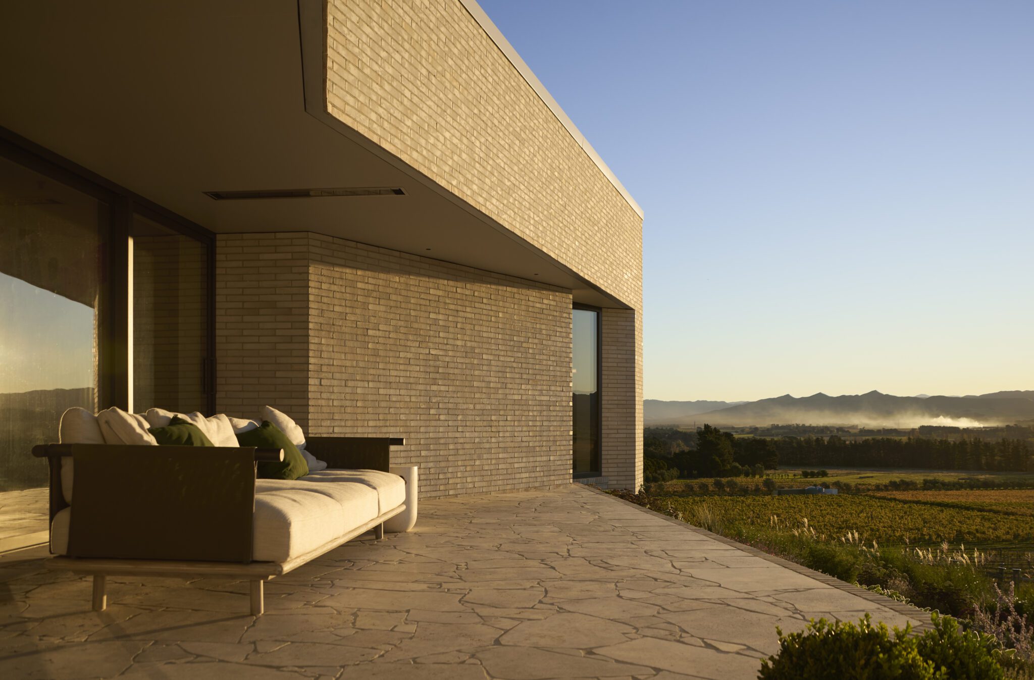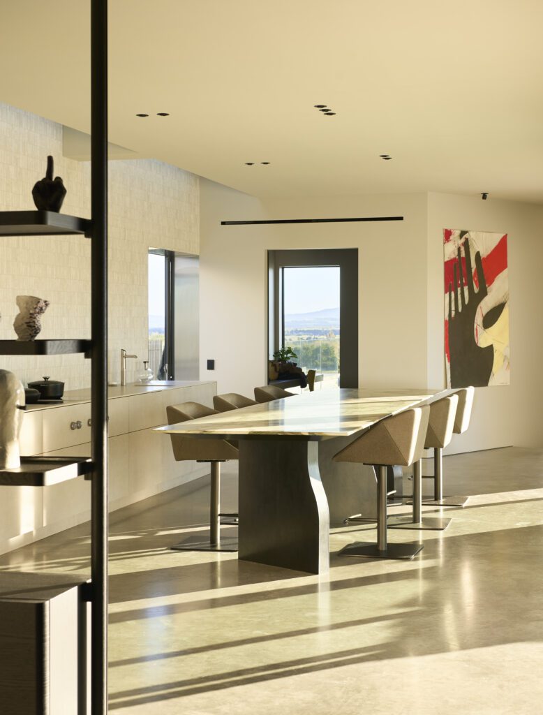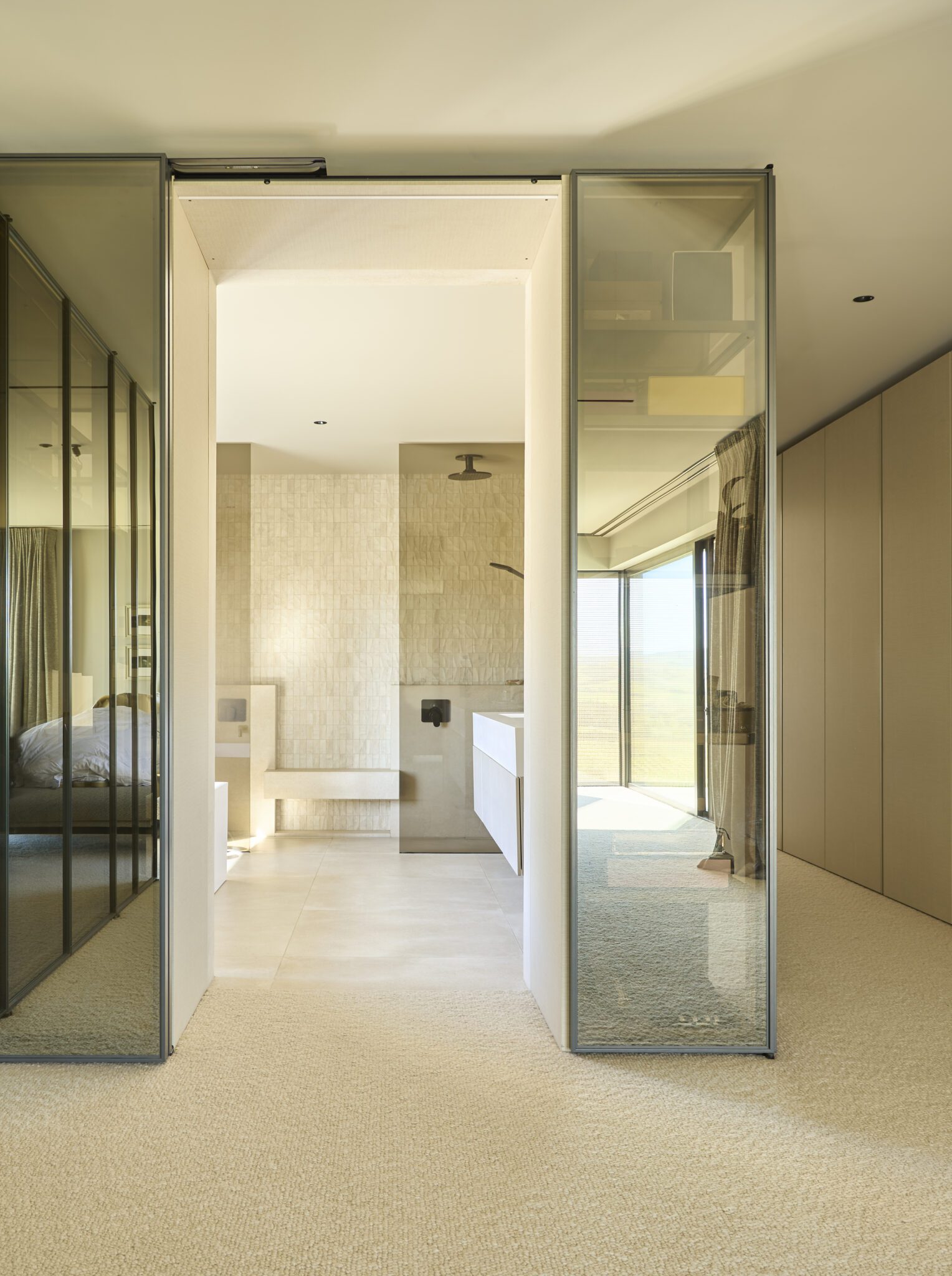 Case explains that the windows are deliberately proportioned as frames, curating moments of the surrounding terrain: distant outcrops, vineyard rows flowing downhill, and long axial views that align living spaces with the land’s natural contours, distant or otherwise.