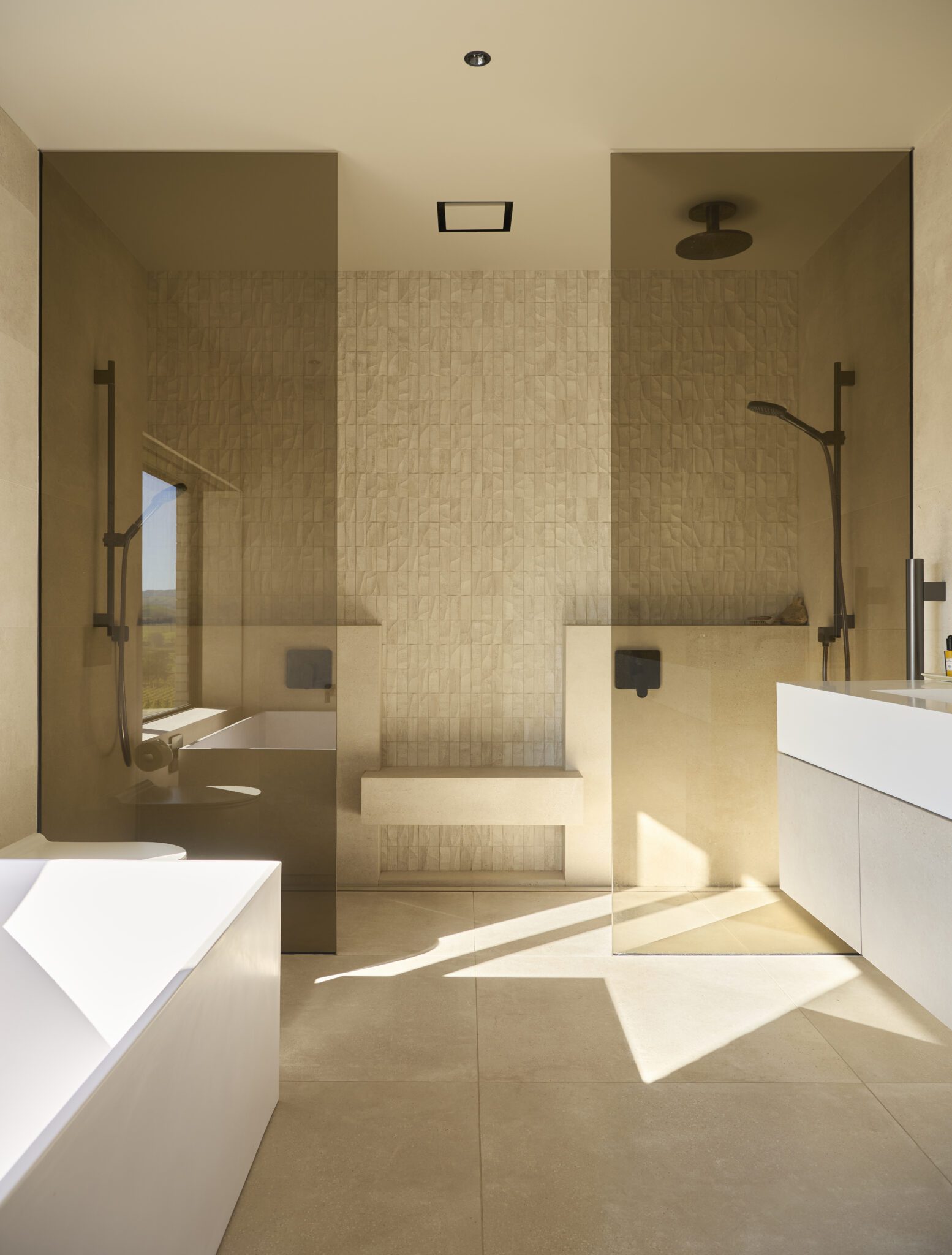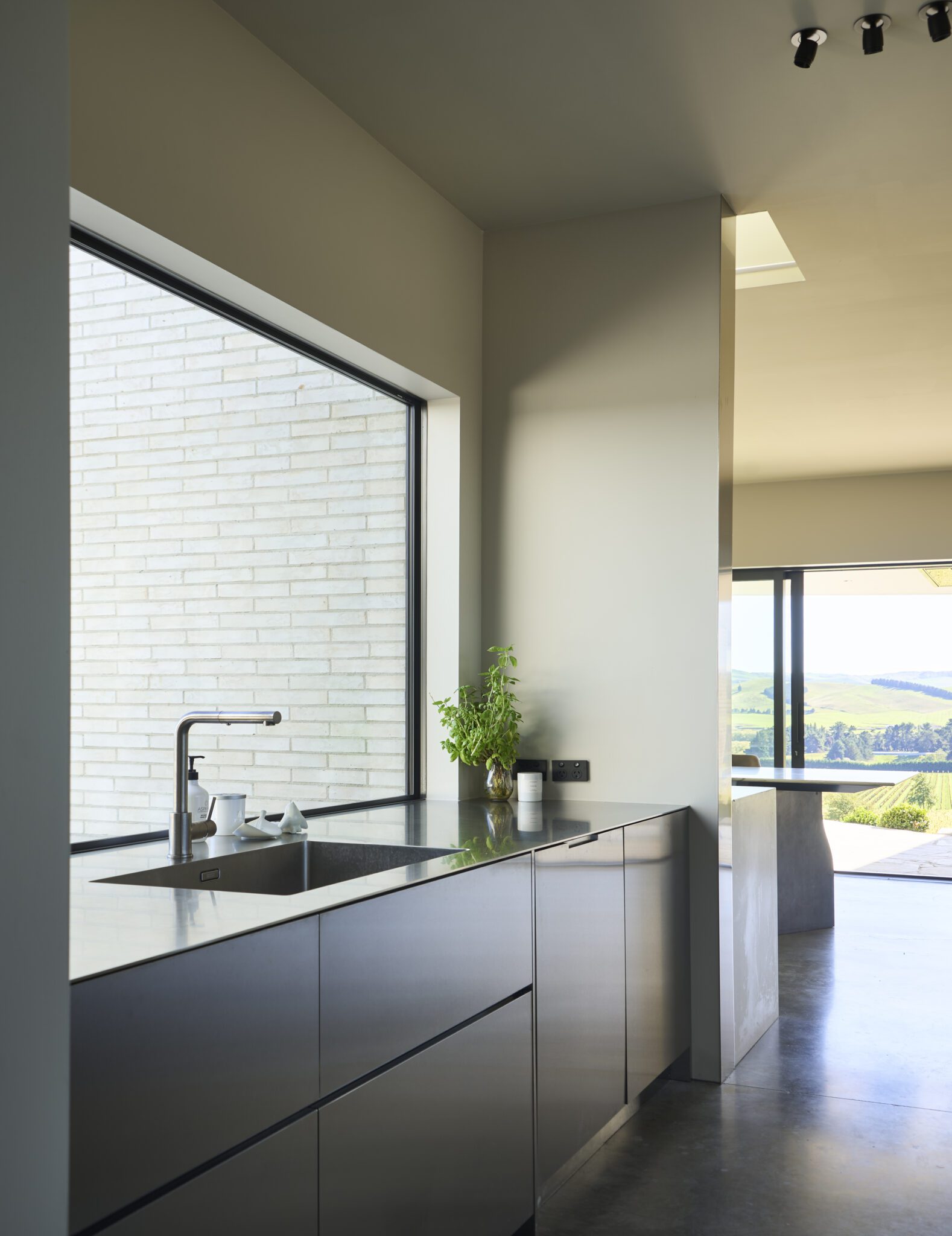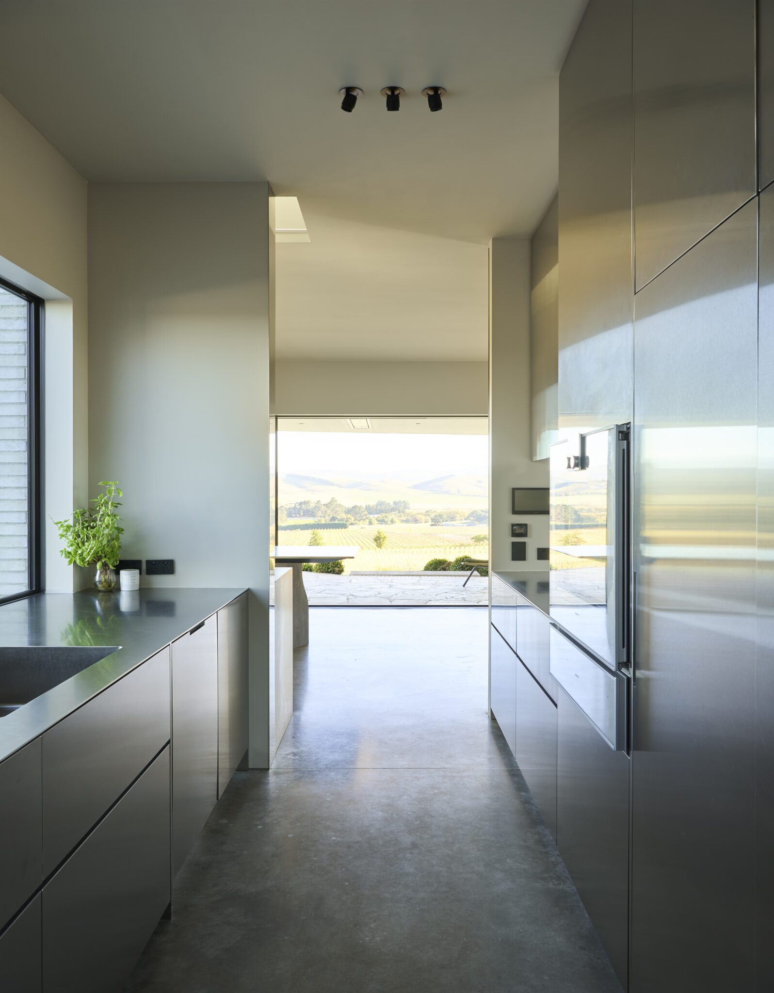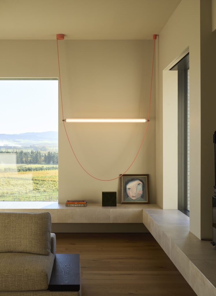 Case explains that the windows are deliberately proportioned as frames, curating moments of the surrounding terrain: distant outcrops, vineyard rows flowing downhill, and long axial views that align living spaces with the land’s natural contours, distant or otherwise.